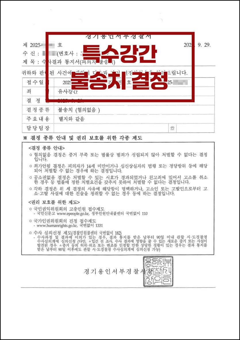 [특수강간] 관전클럽 특수강간 불송치 결정으로 방어