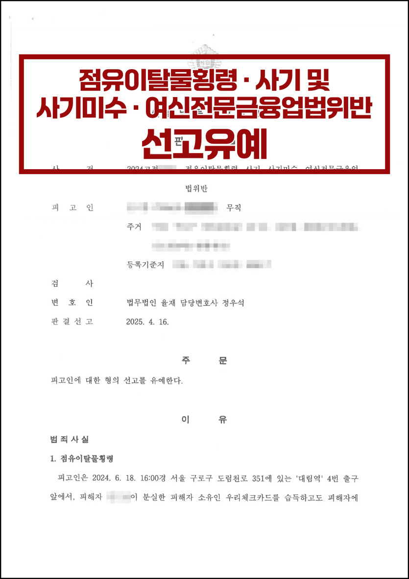 [사기 등] 점유이탈물횡령·사기·여신전문금융업법 위반 '선고유예'로 방어한 사례