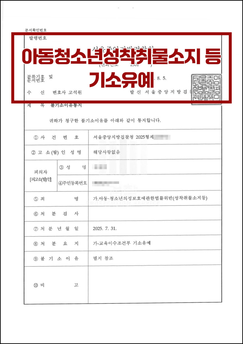 [아청법 위반]아동청소년성착취물소지 등 기소유예 방어 사례